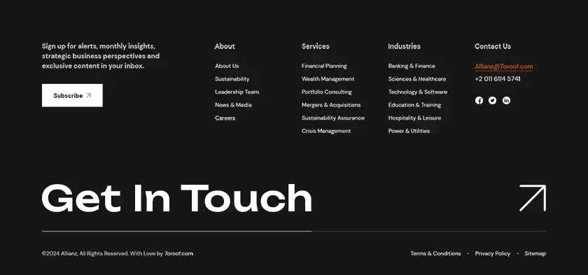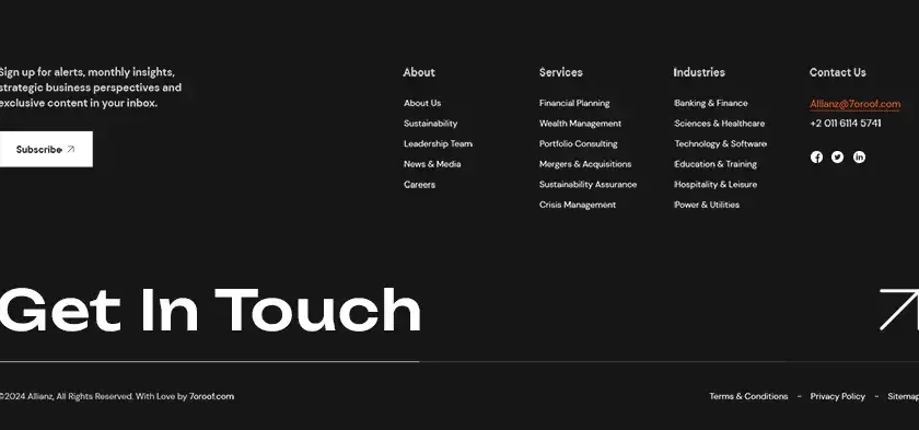 Sign up for alerts, monthly insights, strategic business perspectives and exclusive content in your inbox. Subscribe Newsletter Sign up for industry alerts, deals, news and insights from us. Company About Us Sustainability Leadership Team News & Media Careers Services Financial Planning Wealth Management Portfolio Consulting Mergers & Acquisitions Sustainability Assurance Crisis Management Industries Banking & Finance Sciences & Healthcare Technology & Software Education & Training Hospitality & Leisure Power & Utilities Quick Contact Allianz@7oroof.com +2 011 6114 5741 Get In Touch Name* Email* Phone* Country Select CountryAfghanistanAland IslandsAlbaniaAlgeriaAmerican SamoaAndorraAngolaAnguillaAntarcticaAntigua And BarbudaArgentinaArmeniaArubaAustraliaAustriaAzerbaijanBahamas TheBahrainBangladeshBarbadosBelarusBelgiumBelizeBeninBermudaBhutanBoliviaBosnia and HerzegovinaBotswanaBouvet IslandBrazilBritish Indian Ocean TerritoryBruneiBulgariaBurkina FasoBurundiCambodiaCameroonCanadaCape VerdeCayman IslandsCentral African RepublicChadChileChinaChristmas IslandCocos (Keeling) IslandsColombiaComorosCongoCongo The Democratic Republic Of TheCook IslandsCosta RicaCote D'Ivoire (Ivory Coast)Croatia (Hrvatska)CubaCyprusCzech RepublicDenmarkDjiboutiDominicaDominican RepublicEast TimorEcuadorEgyptEl SalvadorEquatorial GuineaEritreaEstoniaEthiopiaFalkland IslandsFaroe IslandsFiji IslandsFinlandFranceFrench GuianaFrench PolynesiaFrench Southern TerritoriesGabonGambia TheGeorgiaGermanyGhanaGibraltarGreeceGreenlandGrenadaGuadeloupeGuamGuatemalaGuernsey and AlderneyGuineaGuinea-BissauGuyanaHaitiHeard and McDonald IslandsHondurasHong Kong S.A.R.HungaryIcelandIndiaIndonesiaIranIraqIrelandIsraelItalyJamaicaJapanJerseyJordanKazakhstanKenyaKiribatiKorea NorthKorea SouthKuwaitKyrgyzstanLaosLatviaLebanonLesothoLiberiaLibyaLiechtensteinLithuaniaLuxembourgMacau S.A.R.MacedoniaMadagascarMalawiMalaysiaMaldivesMaliMaltaMan (Isle of)Marshall IslandsMartiniqueMauritaniaMauritiusMayotteMexicoMicronesiaMoldovaMonacoMongoliaMontenegroMontserratMoroccoMozambiqueMyanmarNamibiaNauruNepalNetherlands AntillesNetherlands TheNew CaledoniaNew ZealandNicaraguaNigerNigeriaNiueNorfolk IslandNorthern Mariana IslandsNorwayOmanPakistanPalauPalestinian Territory OccupiedPanamaPapua new GuineaParaguayPeruPhilippinesPitcairn IslandPolandPortugalPuerto RicoQatarReunionRomaniaRussiaRwandaSaint HelenaSaint Kitts And NevisSaint LuciaSaint Pierre and MiquelonSaint Vincent And The GrenadinesSaint-BarthelemySaint-Martin (French part)SamoaSan MarinoSao Tome and PrincipeSaudi ArabiaSenegalSerbiaSeychellesSierra LeoneSingaporeSlovakiaSloveniaSolomon IslandsSomaliaSouth AfricaSouth GeorgiaSouth SudanSpainSri LankaSudanSurinameSvalbard And Jan Mayen IslandsSwazilandSwedenSwitzerlandSyriaTaiwanTajikistanTanzaniaThailandTogoTokelauTongaTrinidad And TobagoTunisiaTurkeyTurkmenistanTurks And Caicos IslandsTuvaluUgandaUkraineUnited Arab EmiratesUnited KingdomUnited StatesUnited States Minor Outlying IslandsUruguayUzbekistanVanuatuVatican City State (Holy See)VenezuelaVietnamVirgin Islands (British)Virgin Islands (US)Wallis And Futuna IslandsWestern SaharaYemenZambiaZimbabwe State Select State City Select City Company Name Website Industry Banking & FinanceSciences & HealthcareTechnology & SoftwareEducation & TrainingHospitality & LeisurePower & Utilities Current Stage Idea/Concept StagePrototyping/Planning StageReady to LaunchEarly Revenue StageGrowth/Mature Stage Business Description How much capital are you raising? No capital requiredUncertainUnder $500,000$500,000 – $999,999$1,000,000 – $2,499,999$2,500,000 – $4,999,999$5,000,000 – $9,999,999$10,000,000 or more Services Required/Select all that apply/ How much capital are you raising?Business PlanBusiness Model DesignFinancial ForecastPrivate Placement MemorandumExecutive EducationMarket Research & AnalysisCompetitor Research & AnalysisPitch Deck / Investor PresentationSBA CertificationTurnaround ConsultingCompany Valuation Other (please specify below) How fast do you need it? Submit Request ©2024 Allianz, All Rights Reserved. With Love by 7oroof.com Terms & Conditions Privacy Policy Site Map